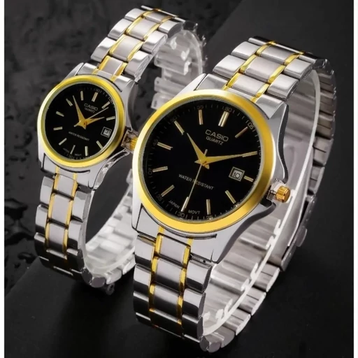 ساعت ست و تکی زنانه و مردانه کاسیو casio ، صحفه گرد مشکی بند استیل فول مشکی شیک و خاص۴۸۰٬۰۰۰ تومان