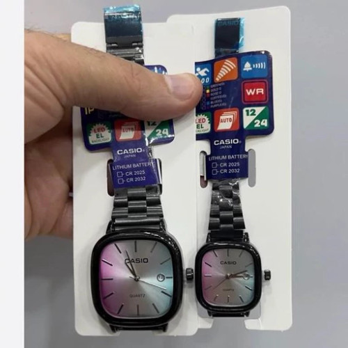 ساعت ست مردانه زنانه کاسیوcasioبند استیل نقره ای رنگ بندی کامل