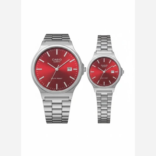 ساعت ست مردانه زنانه کاسیوcasioبند استیل نقره ای رنگ بندی کامل