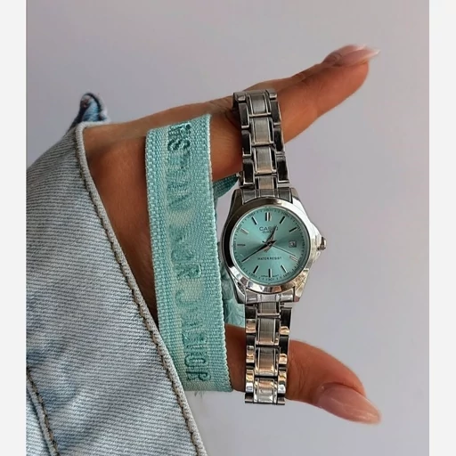 ساعت مچی زنانه و مردانه کاسیو استیل رنگ ثابت دارای روز شمار صفحه نمایش ابی تیفانی کیفیت بینظیر