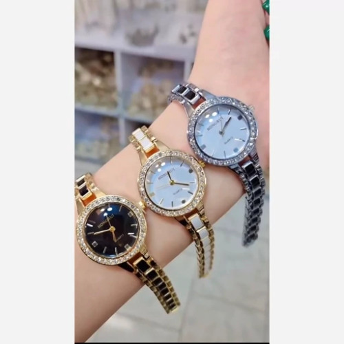 ساعت مچی زنانه هانگری قاب دورنگین سرامیکی کیفیت عالی