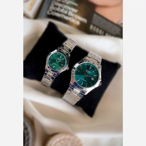 ساعت ست مردانه زنانه کاسیوcasioبند استیل نقره ای رنگ بندی کامل