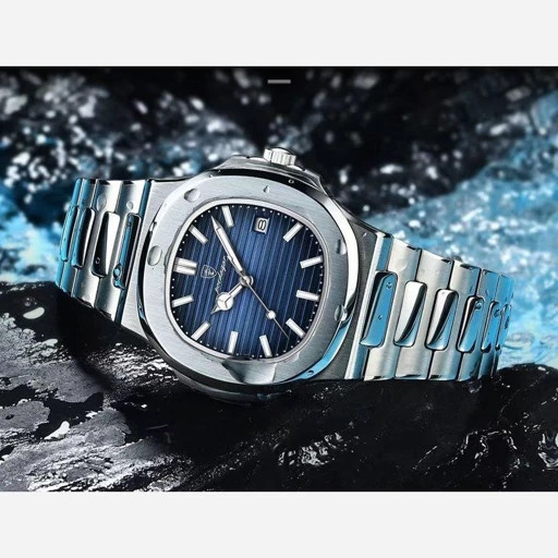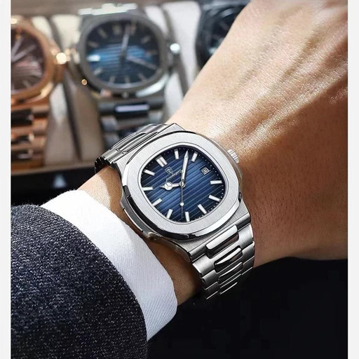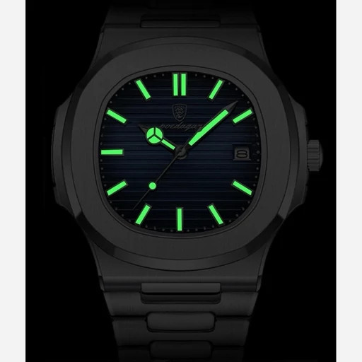 poedagar New collection ✨️ Original watch 《highe quality》 🔥پوداگار مربعی خاص شب نما بند استیل مقاوم دربرابر آب شیشه معدنی رنگ ثابت قفل سگک دوپروانه ای همراه جعبه و باتری اضافی