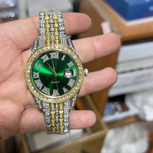 موتور با کیفیت ✅️فول نگین اتمی با کیفیت ✅️مخراج نگین با کیفیت ✅️شیشه معدنی دولایه ✅️عقربه ها شبنما ✅️قفل کلیپسی دکمه دار ✅️آنتی آلرژی ✅️ضد آب همراه جعبه وباطری اضافه