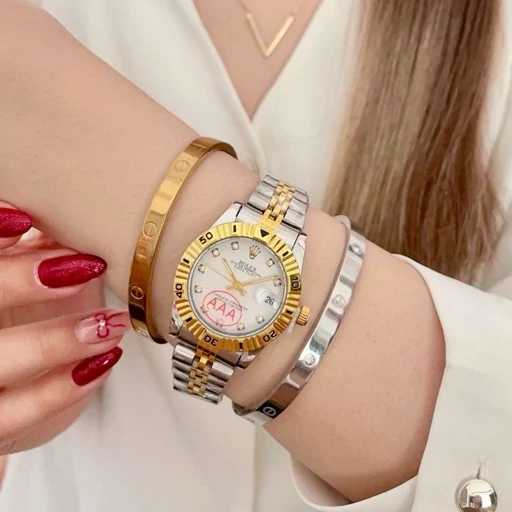 ROLEX Date just زنونه رولکس دیت جاس کیفیت عالی گرید کیفیتی AAA دارای روز شمار بدنه و بند استیل ضداب قفل کلیپسی رولکسی صفحه نگینی خاص وجذاب تقویم تلسکوپی همراه جعبه وباتری اضافی مقدار: 1 عددی