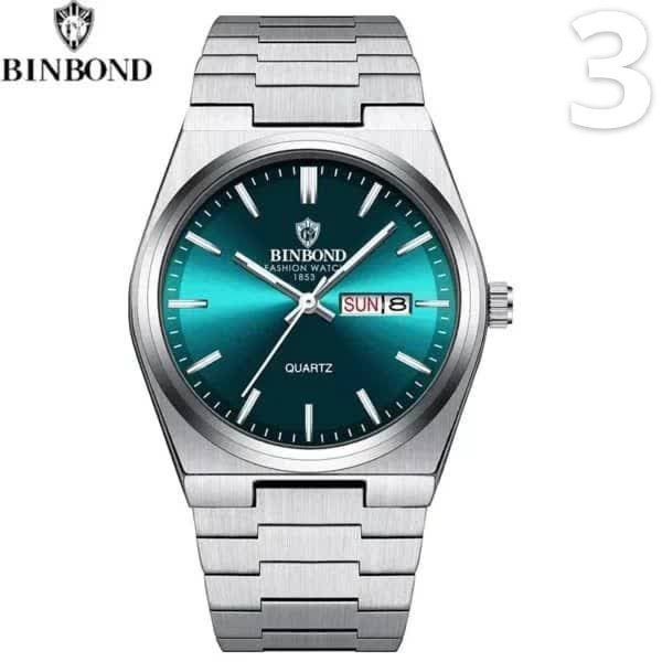 ساعت مچی مردانه بین باند اورحینال دوتقویم شب نما رنگ ثابت ضد اب BIN BOND