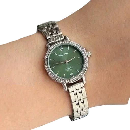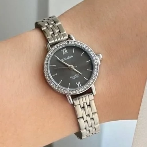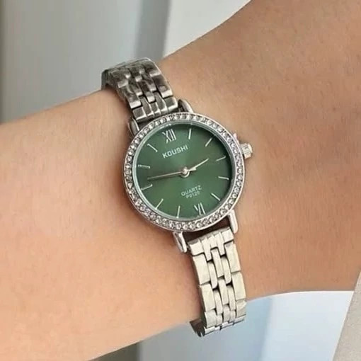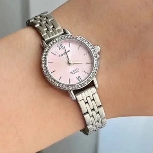 ساعت مچی زنانه کوشی بند استیل نقره ای قاب دورنگین ضد اب رنگ ثابت کیفیت بینظیرKOUSHI