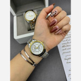 《highe quality》 Original watch ⌚️بین باند مدلی نو مقاوم دربرابر آب برندشرکتی اوریجینال کارت گارانتی دارای روز شمار ایام هفته بند استیل فولاد شیشه سافایر شب نما قفل دو پروانه موتور اصلی همراه جعبه وباتری اضافی برای ست دوعدد ثبت کنید