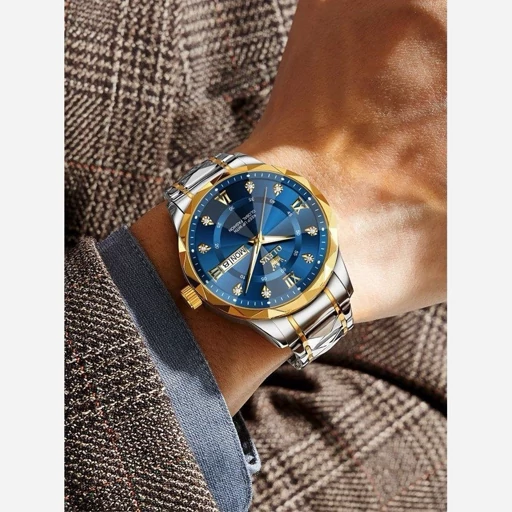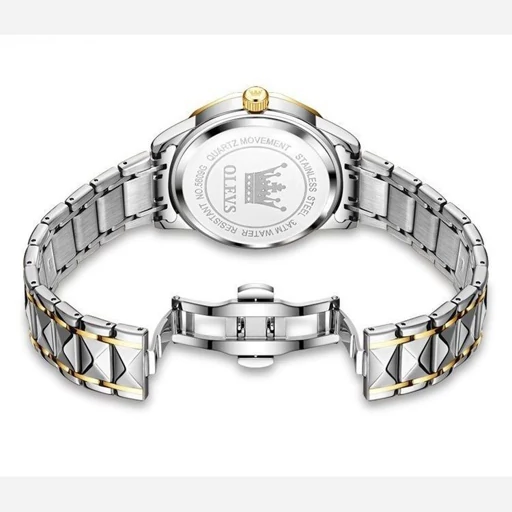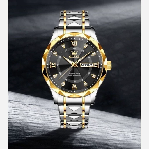 olevs Collection 2026 Man watch الوز مردونه 《ویژگی های محصول 》 مقاوم در برابر آب طرح الماس دارای روز شمار ایام هفته صفحه شب نما بند فولاد استیل قفل پروانه ای استیل مخفی شیشه سافایر ضدخش همراه جعبه وباتری اضافی