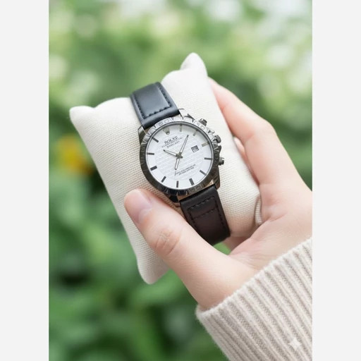 ساعت مچی مردانه رولکس تقویم دار بند چرم دور دوخت کیفیت بینظیر
