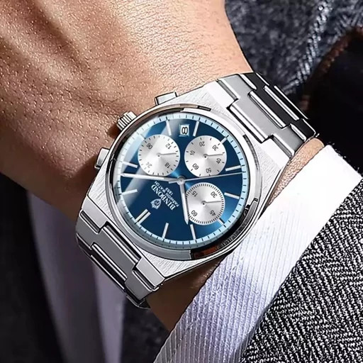 ☑️BIN BOND 《highe quality》 Original watch ⌚️بین باند مدلی نو مناسب آقایان مقاوم دربرابر آب برندشرکتی اوریجینال کرنوگراف سه موتور فعال دارای روز شمار ضخامت 11میل قطر صفحه 43میل بند استیل ثابت شیشه سافایر شب نما بسیار خاص همراه جعبه وباتری اضافی