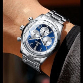 ☑️BIN BOND 《highe quality》 Original watch ⌚️بین باند مدلی نو مناسب آقایان مقاوم دربرابر آب برندشرکتی اوریجینال کرنوگراف دارای روز شمار بند استیل فولاد شیشه سافایر شب نما قفل دو پروانه همراه جعبه باتری اضافی