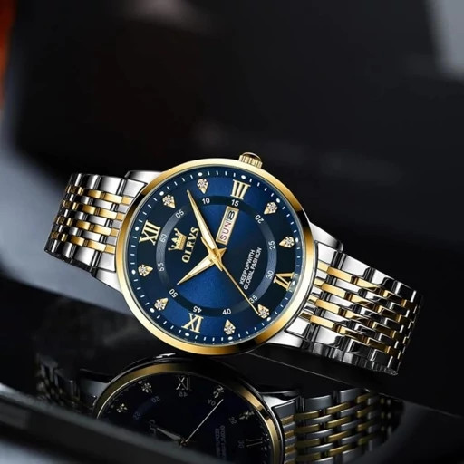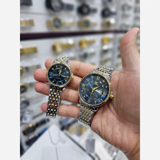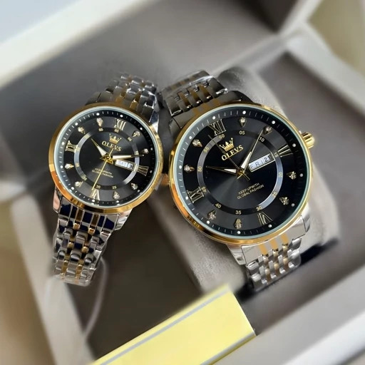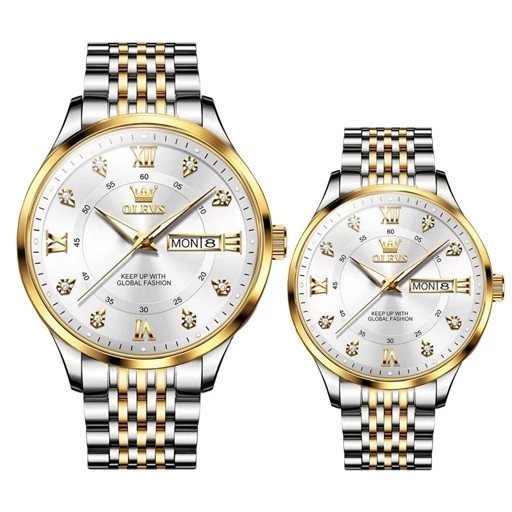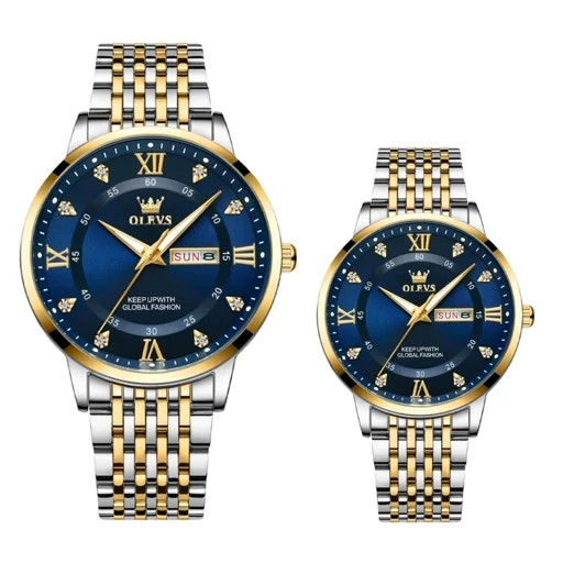 olevs 🔥Sold well Couple watch ست الوز 《ویژگی های محصول 》 موتور کوارتز مقاوم در برابر آب طرح الماس دارای روز شمار ایام هفته صفحه شب نما بند وستاری قفل پروانه ای استیل مخفی شیشه سافایر ضدخش همراه جعبه وباتری اضافی