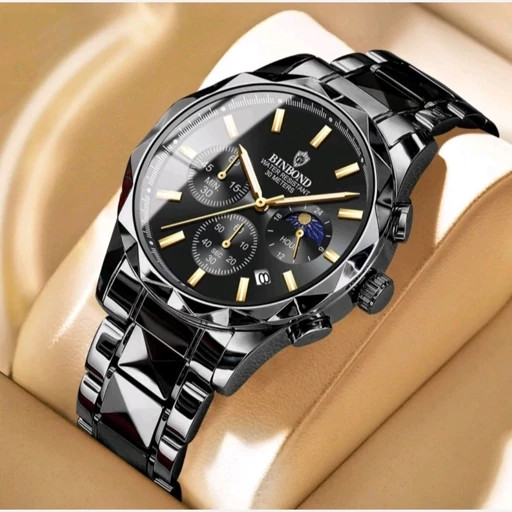 ساعت مچی مردانه اورجینال سه موتور فعال بین باند کرنوگراف رنگ ثابت شب نما ضد اب خاص وشیک BIN BOND