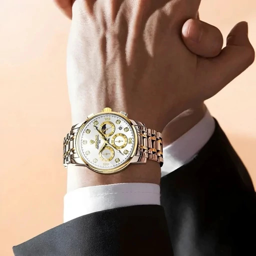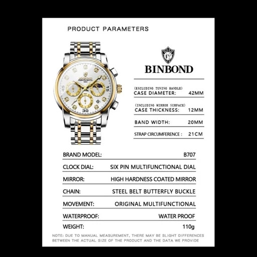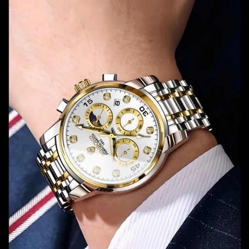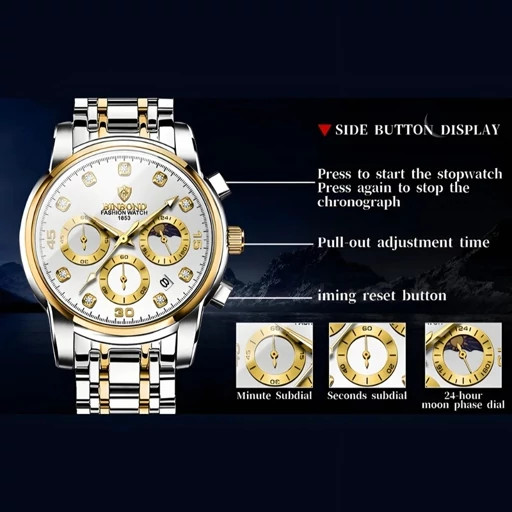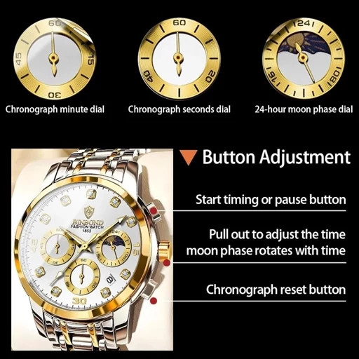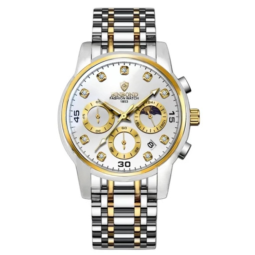 BIN BOND ساعت مچی مردانه اورجینال بین باند موتور اورجینال چهارموتور فعال کرنوگراف رنگ ثابت ضد اب کارت گارانتی یک سال ضمانت نمایشگر خورشید وماه نمایش 24ساعت ضداب 3atm قفل استیل پروانه ای مخفی همراه جعبه