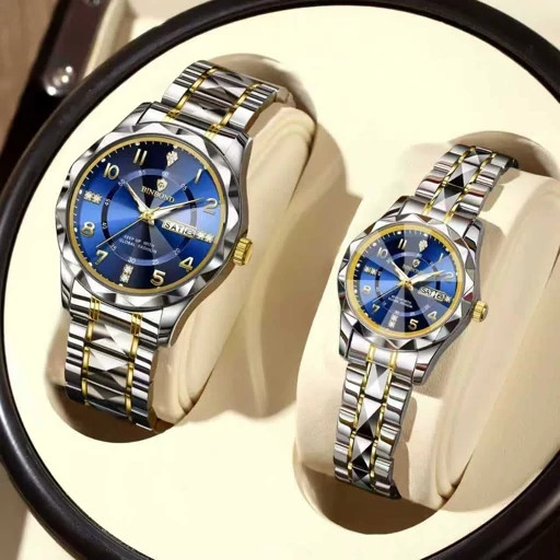 ساعت مچی زنانه و مردانه بین باند اورجینال شیشه الماسی دوتقویم ضداب شب نما رنگ ثابت ضمانتی BIN BOND