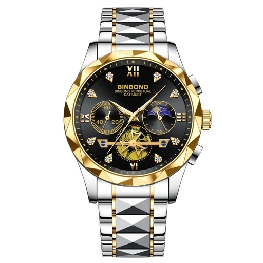 BIN BOND ساعت مچی مردانه اورجینال بین باند موتور اورجینال چهارموتور فعال کرنوگراف رنگ ثابت ضد اب کارت گارانتی یک سال ضمانت نمایشگر خورشید وماه نمایش 24ساعت ضداب 3atm قفل استیل پروانه ای مخفی رنگ بندی کامل مناسب استایل فشن اسپرت کلاسیک