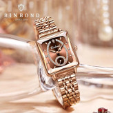 ساعت مچی زنانه بین باند زیر ثانیه فعال رنگ ثابت ضداب قفل استیل پروانه ای شب نما اورجینالBIN