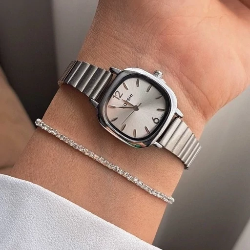 ساعت مچی زنانه کوشی رنگ ثابت بند استیل نقرهای