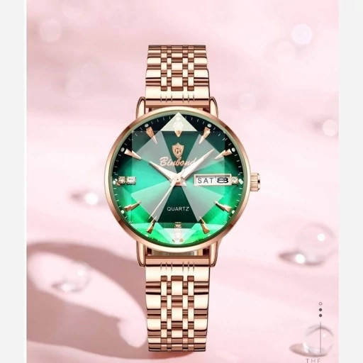 ساعت مچی زنانه اورجینال بین باند دوتقویم شیشه الماسی شب نما ضداب رنگ ثابت BIN BOND