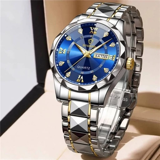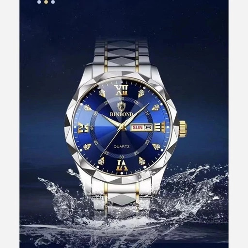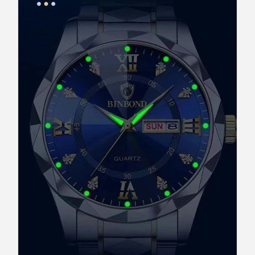 ساعت مچی مردانه اورجینال بین باند صفحه الماسی دوتقویم رنگ ثابت ضداب قفل مخفی شب نماBIN BOND