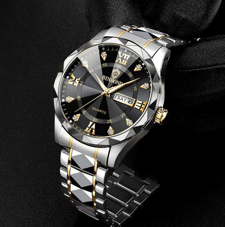 ☑️BIN BOND 《highe quality》 Original watch ⌚️بین باند مدلی نو مردونه پرطرفدار مقاوم دربرابر آب برند اوریجینال شب نما دارای روز شمار ایام هفته بند استیل فولاد شیشه الماسی قفل دو پروانه همراه جعبه وباتری اضافی