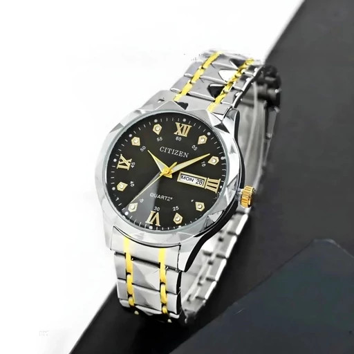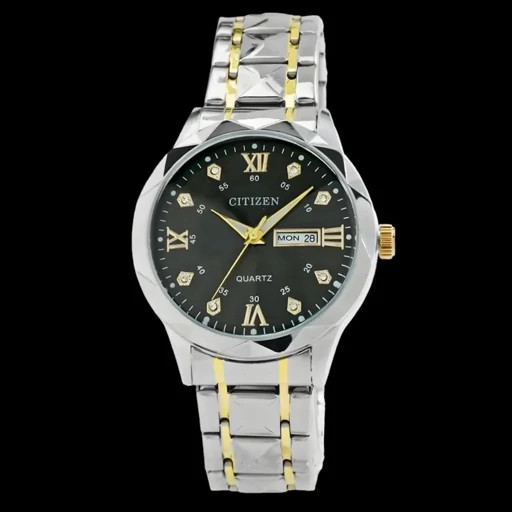CITIZEN ⌚️سی تیزن مدلی نو رفرانس4200GO دارای روز شمار و ایام هفته طرح الماس بند استیل مقاوم دربرابر آب قفل کلیپسی همراه جعبه وباتری اضافی
