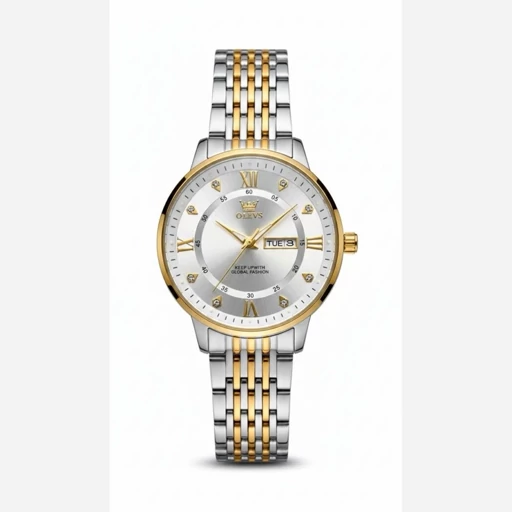 olevs 🔥Sold well Couple watch الوز طراحی بی رقیب 《ویژگی های محصول 》 مقاوم در برابر آب طرح الماس دارای روز شمار ایام هفته صفحه شب نما بند وستاری قفل پروانه ای استیل مخفی شیشه سافایر ضدخش همراه جعبه وباتری اضافی