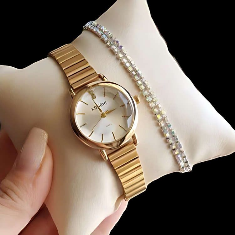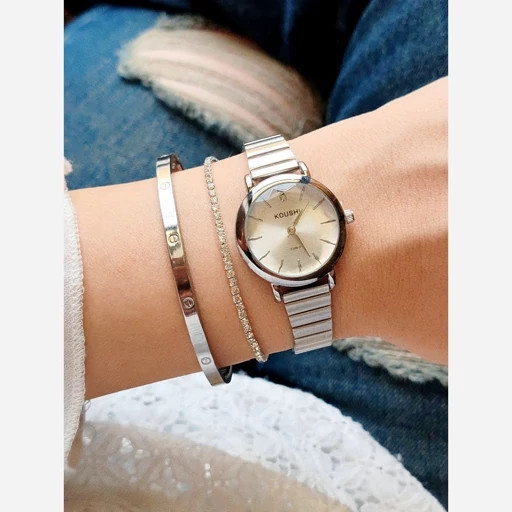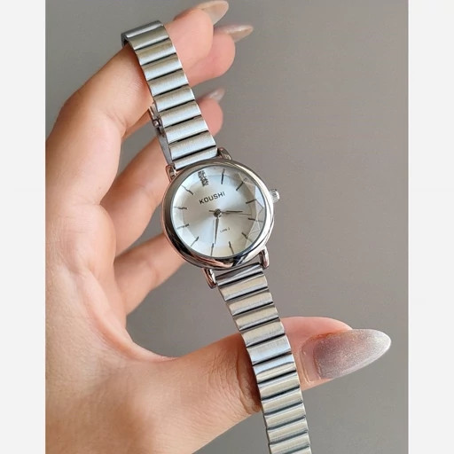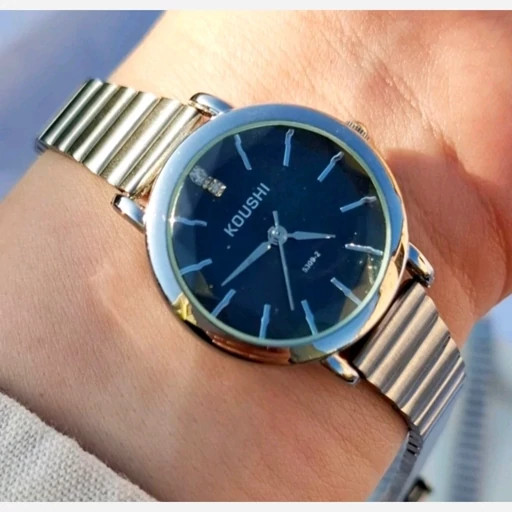 ساعت مچی زنانه کوشی شیشه الماسی بند استیل ریلی+باتری اضافی