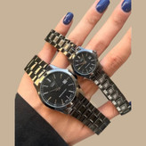 ساعت ست و تکی زنانه و مردانه کاسیو casio ، صحفه گرد مشکی بند استیل فول مشکی شیک و خاص