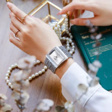 ♤کاکاچی مکعبی خاص برند شرکتی اصلی تلالویی زیبا وچشم نواز کیفیت عالی طرح تیفانی قفل دستبندی موتورکوارتز قاب نگینی بند طرح بافت طنابی رنگ ثابت مقاوم در برابر آب بند استیل همراه جعبه وباتری اضافه