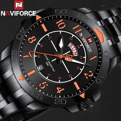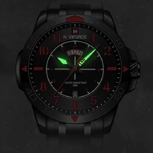 موتور ژاپن رنگ ثابت بند استیل نمایش روزهای هفته روزشمار قطر صفحه 43 میلیمتر ضد حساسیت شیشه کریستالی مقاوم در برابر ضربه و خش قفل استیل ضدآب 3ATM کارت گارانتی و دفترچه همراه جعبه چوبی وباتری اضافه